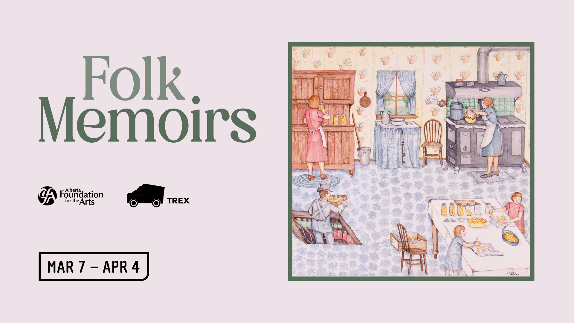 Folk Memoirs is a collection of visual narratives experienced while growing up on the Alberta prairies. The pieces are described as folk art, which is a unique style of art that reflects the cultural life of a community. The exhibition features work by four celebrated Albertan artists: Hazel Litzgus, Irene McCaugherty, William Panko and Doris Zaharichuk.